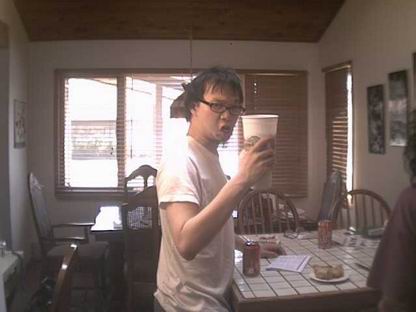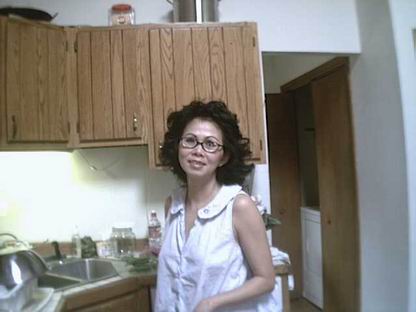 It's my mom in her PJ's and glasses, making the family's dinner!